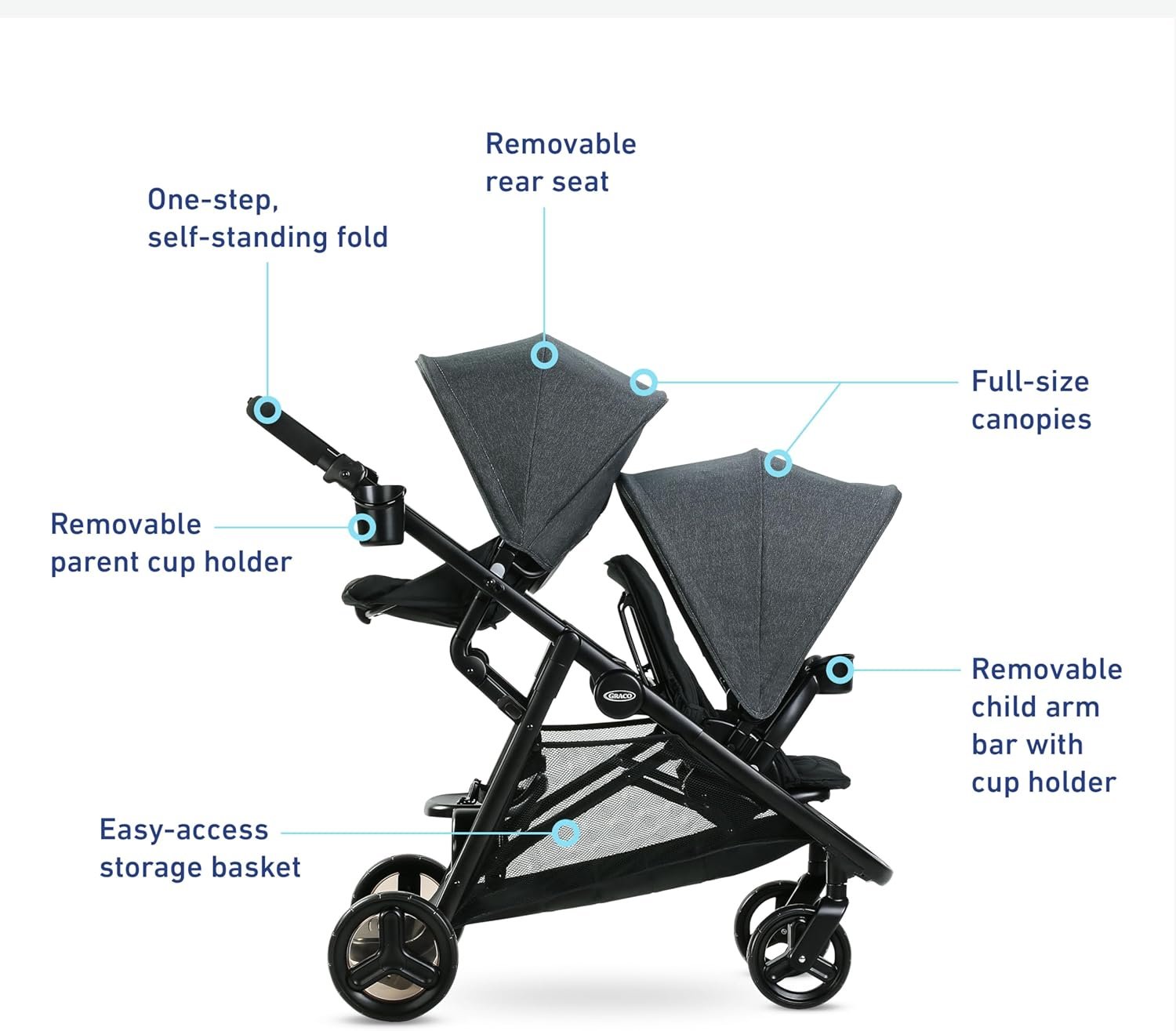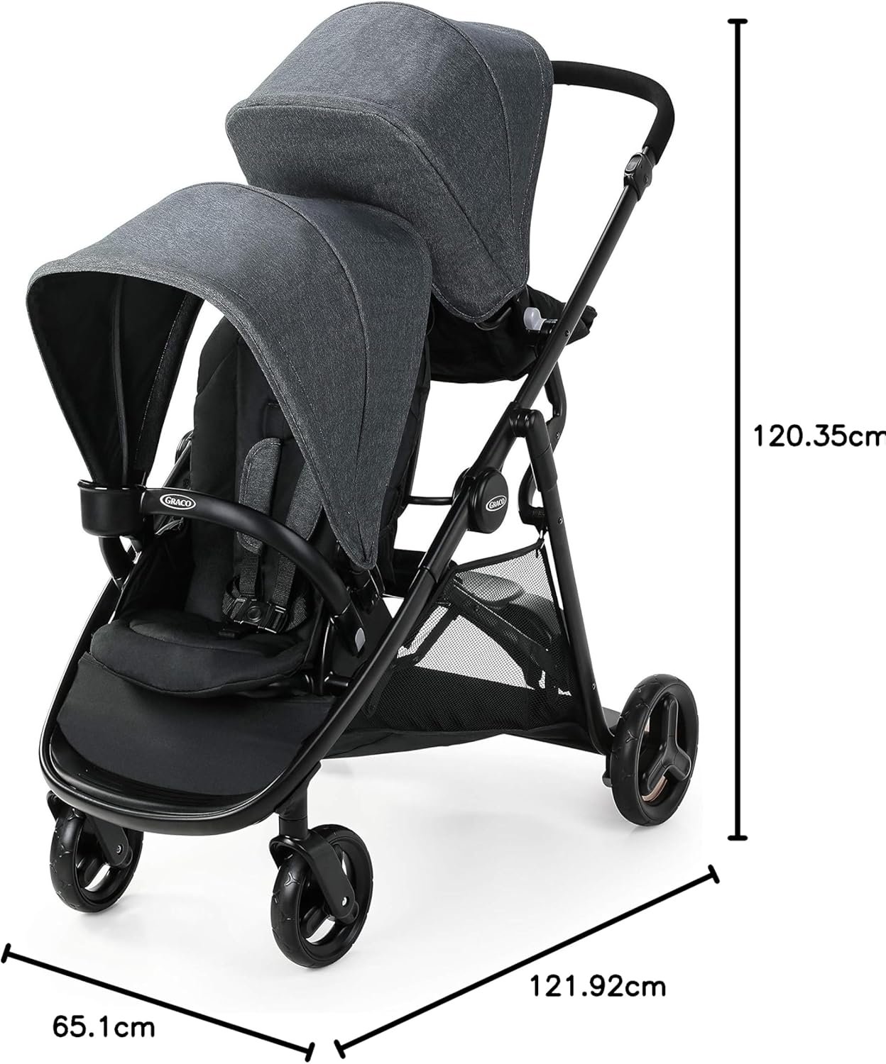 Compatible with all Graco infant car seats, this stroller can hold two infant car seats at once, making it an excellent option for twins. The close-to-you rear seat positioning helps parents stay connected with their baby during strolls.