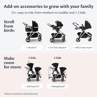- GROWS WITH YOUR FAMILY: Our award-winning modular stroller gives you flexibility to create the perfect setup for your family – whether you have a newborn, toddler, twins or multiple kids in tow. Start strolling from day one, create a custom travel system, or expand to seat 2 or 3 with add-ons like our Infant Accessories, 2nd Seat Kit, and Riding Board (all sold separately). With 22+ configurations, it’s built to evolve with your family.