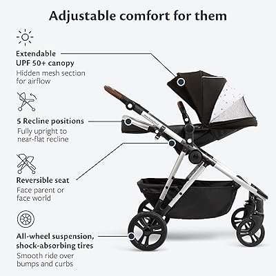 - COMFORT THAT ADJUSTS AS THEY GROW: The included stroller seat easily adjusts to keep your little one comfortable at every stage, no matter what the day brings. Start parent-facing in the early months when they want to stay close, then switch to forward-facing as they grow curious about the world. With 5 recline positions (including near-flat), an adjustable footrest, and a roomy design that holds up to 50 lbs, it’s built for years of everyday adventures.