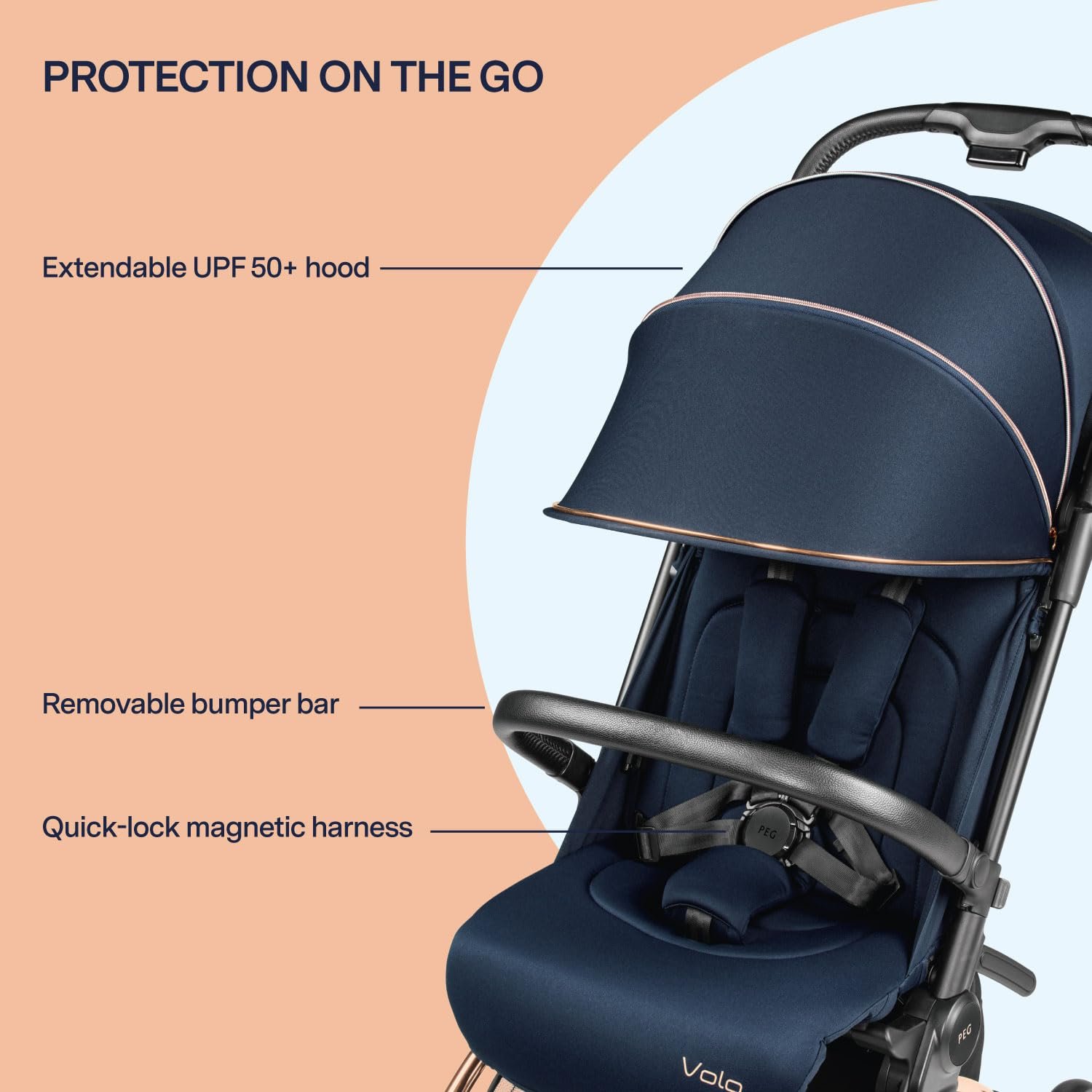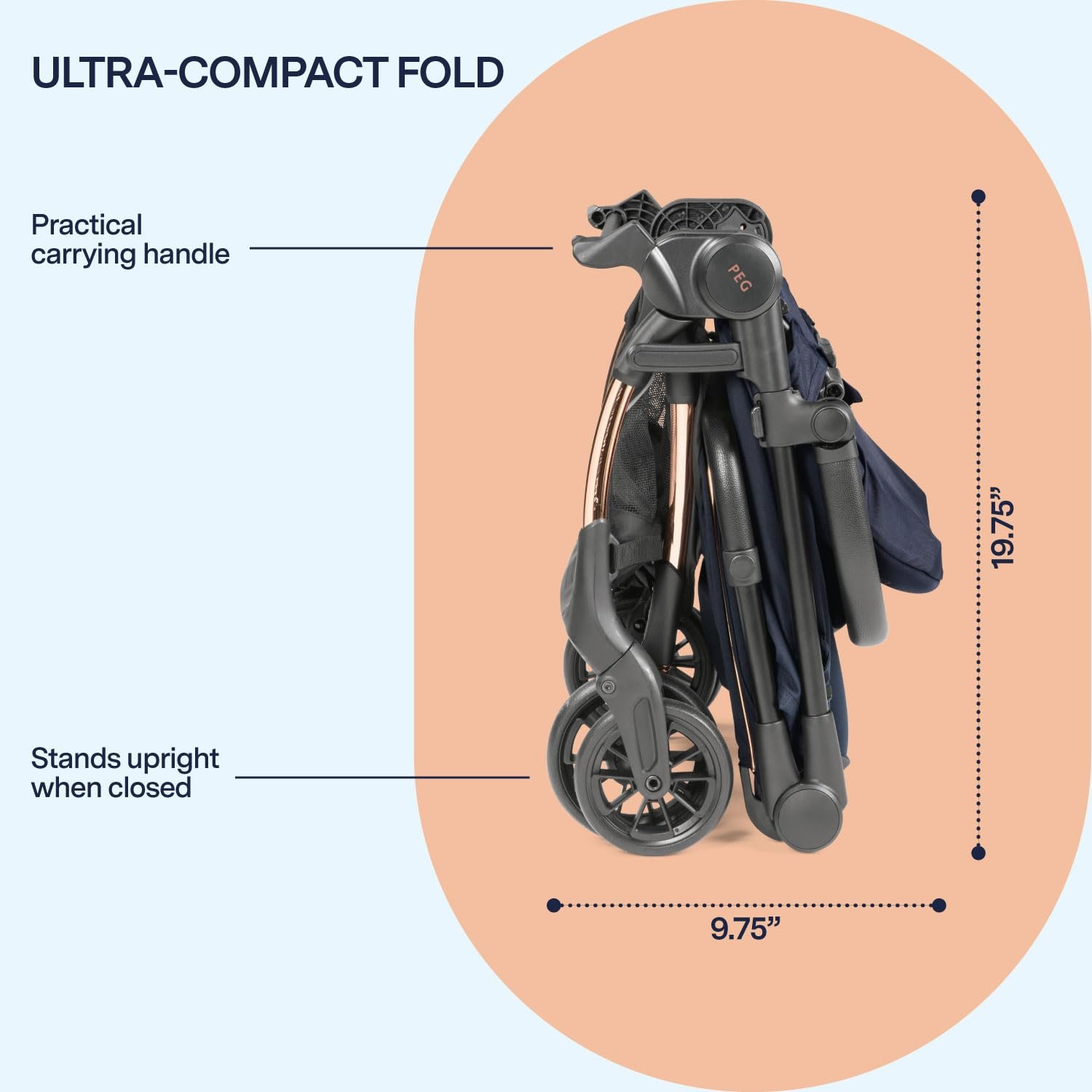 Travel becomes simpler when your stroller works with you, not against you. The Peg Perego Volo Travel Stroller is crafted for portability without compromising performance. At only 12 pounds, it is easy to lift, carry, and store, while its compact self-standing fold makes it ideal for tight spaces and overhead compartments on most airlines.
